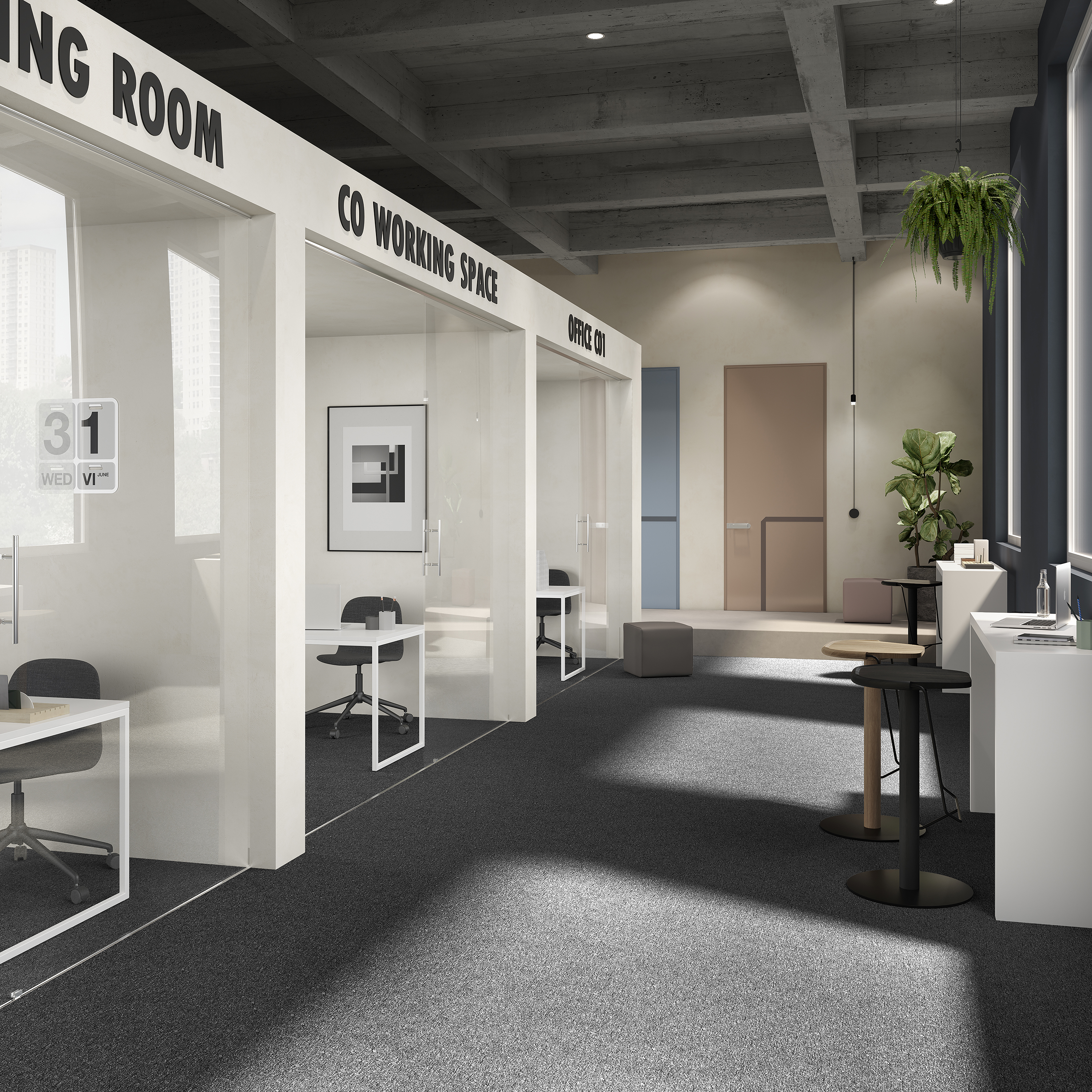 Модульное напольное покрытие для коммерческих помещений с высокой проходимостью. Устойчива к воздействию ножек мебели и колесиков кресел в течение длительного времени.